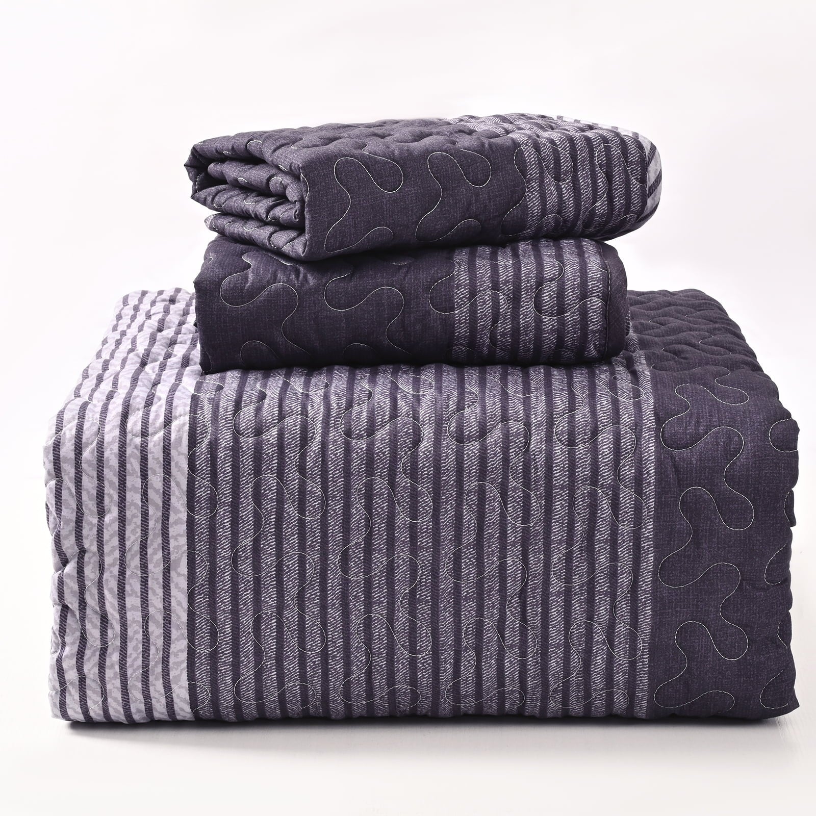 Bleum cade quilt made from microfiber polyester, it is skin-friendly, breathable and light, suitable for all seasons. The neat stitching strengthens the strong connection of the front, the back, the padding and the joint of the quilt, which can be used for machine-washing, no shedding and clumping after wash. You will want to take it with you wherever you cuddle up on a couch, in front of a fire or with that special someone. Suitable for adults and teenagers. We have twin queen and king sizes to choose from, reversible purple/green/dark gray(grey)/black striped design to make your bedroom luxurious elegant, colorful and color fastness is high, easy to light up your bedroom. It is a great gift choice for birthdays, holidays and other occasions!