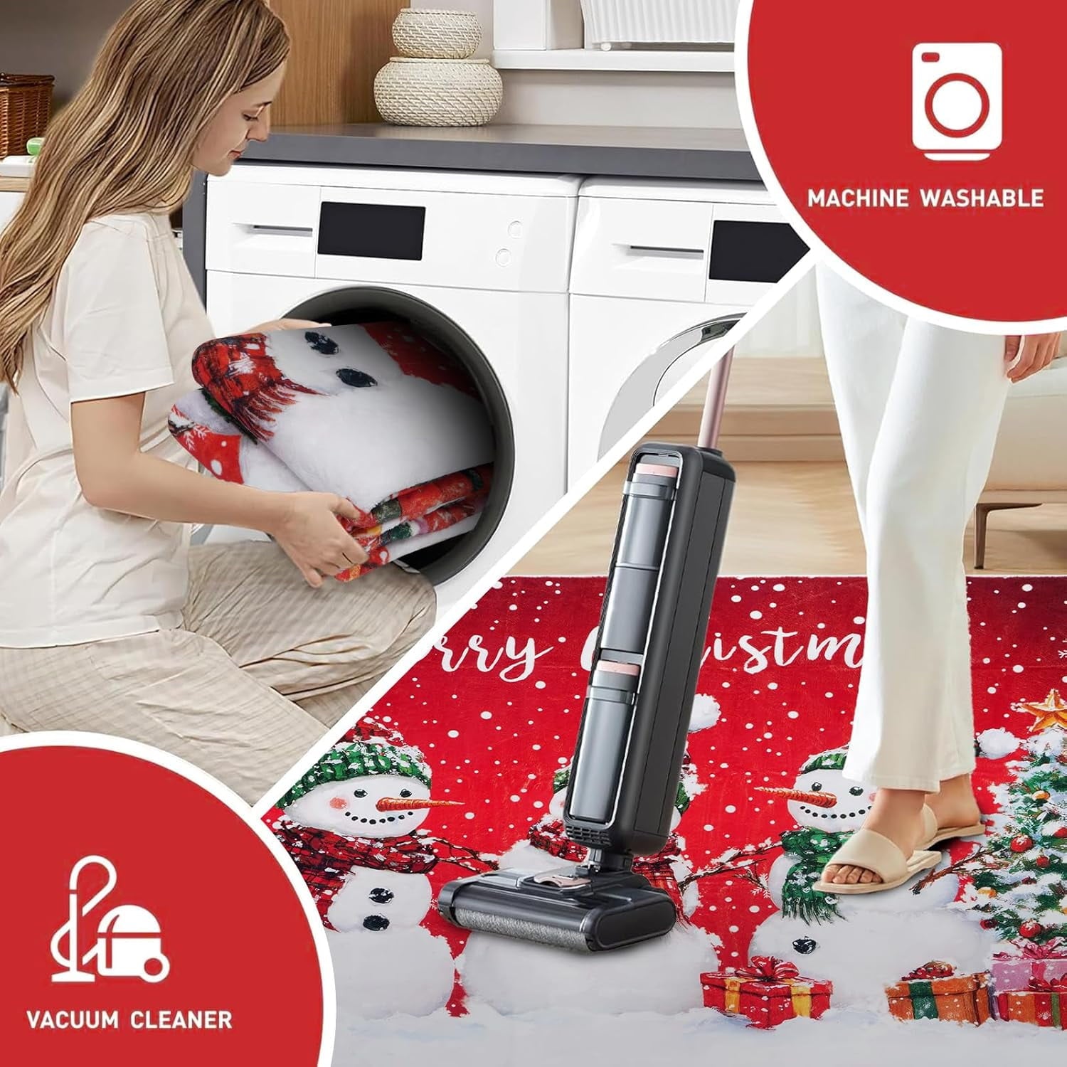 - The sturdy TPR rubber backing of this Christmas washable area rug keeps it firmly in place, providing a secure and non-slip surface that is pet and kid-friendly.