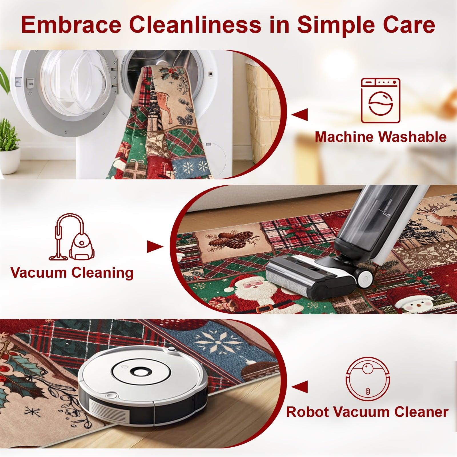 - Washable Rugs: Christmas patchwork front door mat can be machine washed, vacuumed, broomed or dusted. Daily maintenance is easy and convenient, dust and dirt on the surface can be easily removed