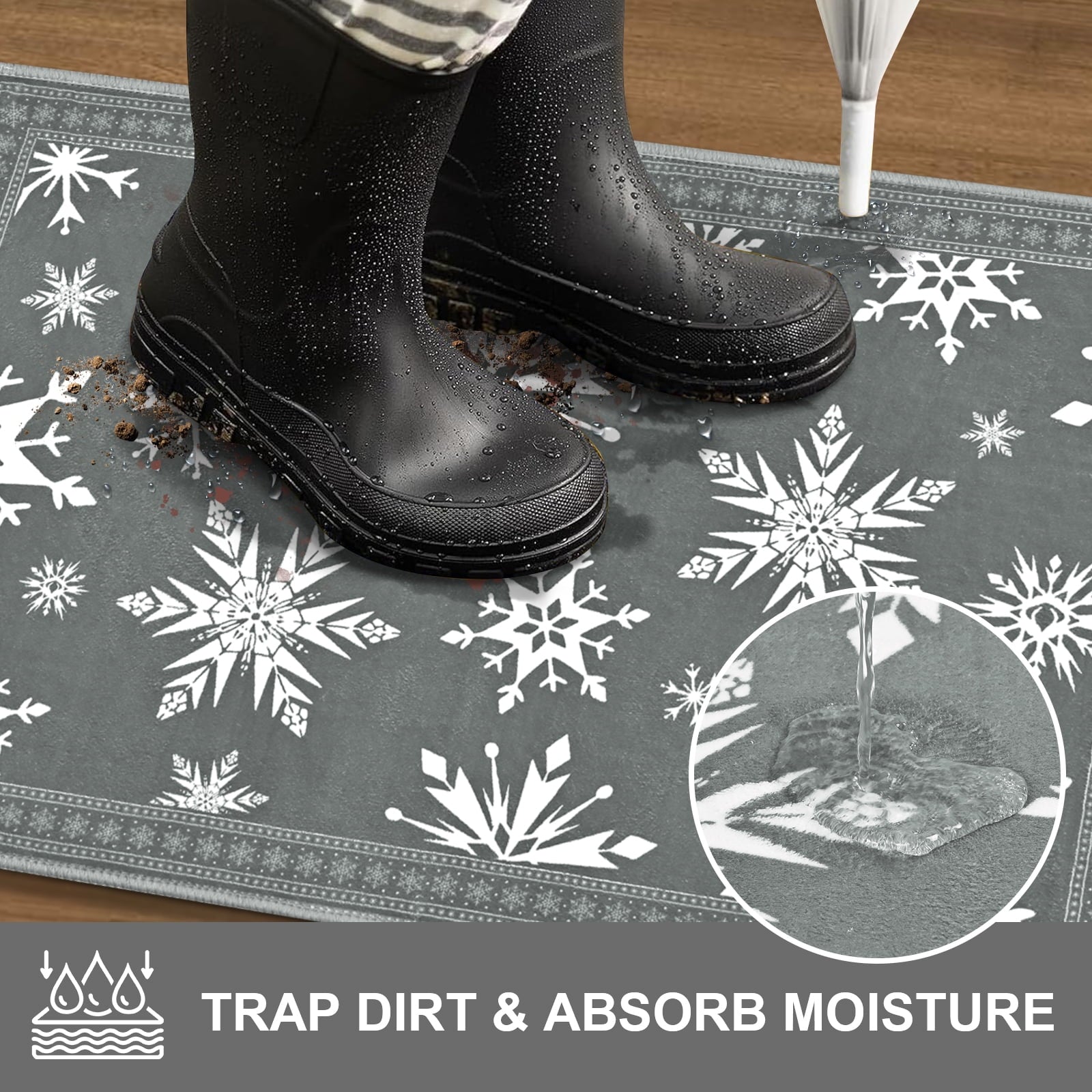 Bleum Cade Christmas Snowflake Area Rugs 2x3 Door Mat, Non Slip Washable Entryway Rug Outdoor Indoor Xmas Santa Welcome Mat for Entrance,Gray