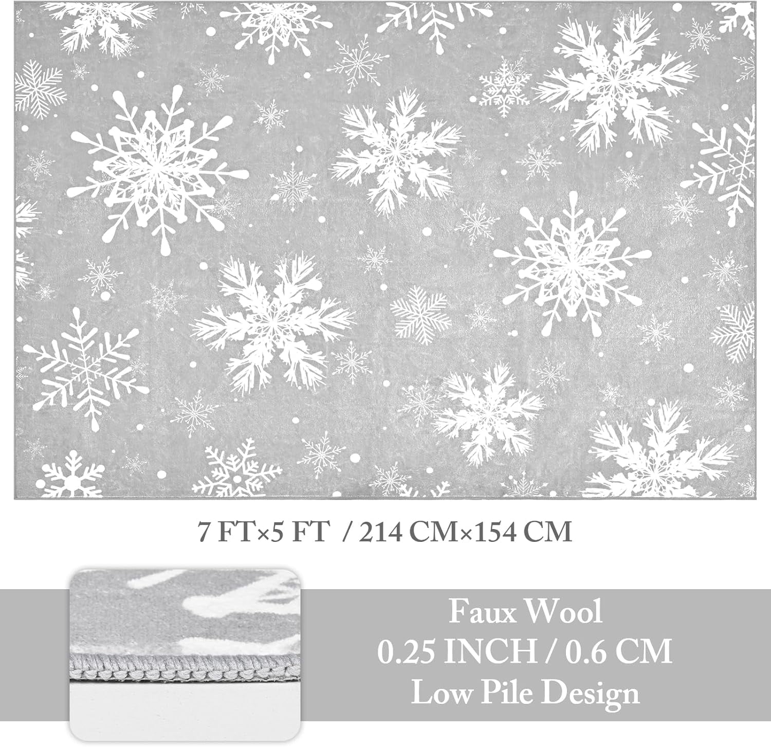 - Christmas Area Rug 5x7: The Christmas rug for living room featuring classic Christmas gray color, with diverse white snowflake designs, lovely and exquisite to make your home more Christmassy this winter. Perfect Christmas decorations