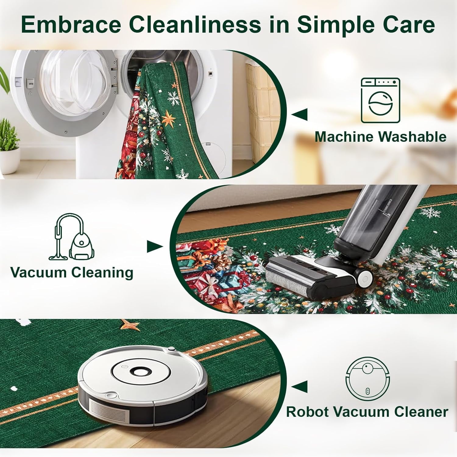 - Non-slip & Non-shedding: The Christmas washable rug are made with a non-slip TPR rubber backing that grips securely on a variety of floor surfaces including tile, vinyl and hardwood floors. Reinforced overlock edges ensure virtually no shedding and durability