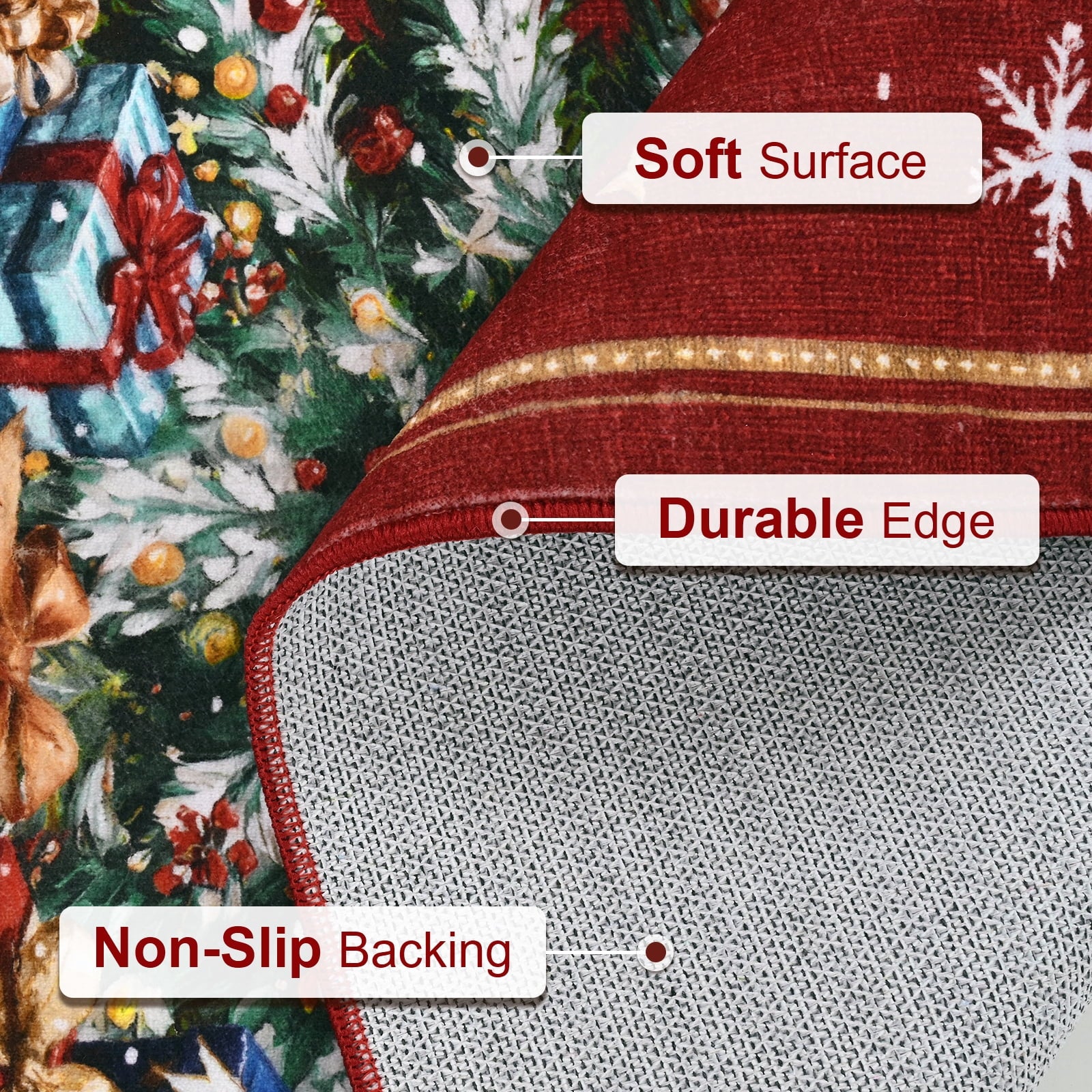 - Non-slip & Non-shedding: The Christmas washable rug are made with a non-slip TPR rubber backing that grips securely on a variety of floor surfaces including tile, vinyl and hardwood floors. Reinforced overlock edges ensure virtually no shedding and durability