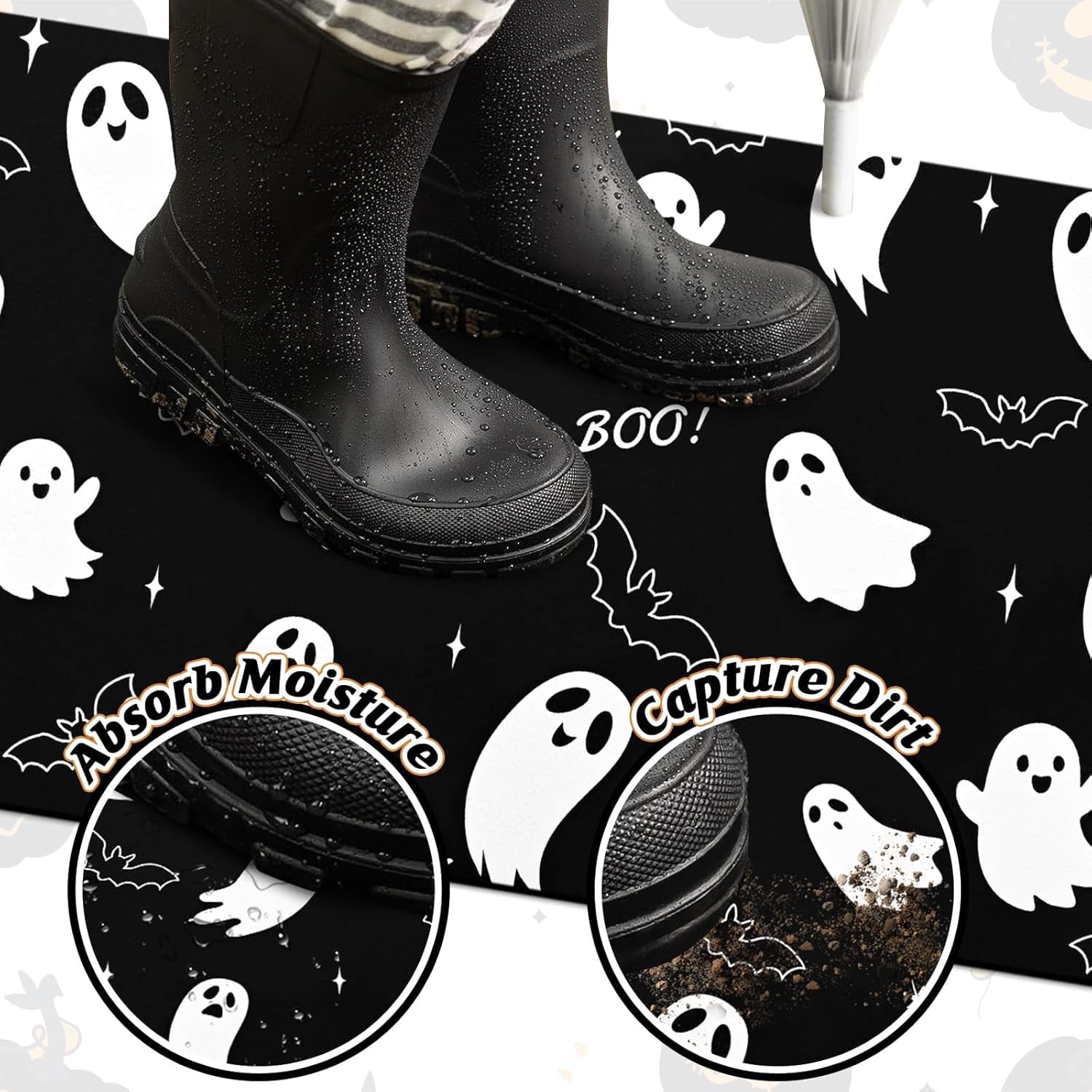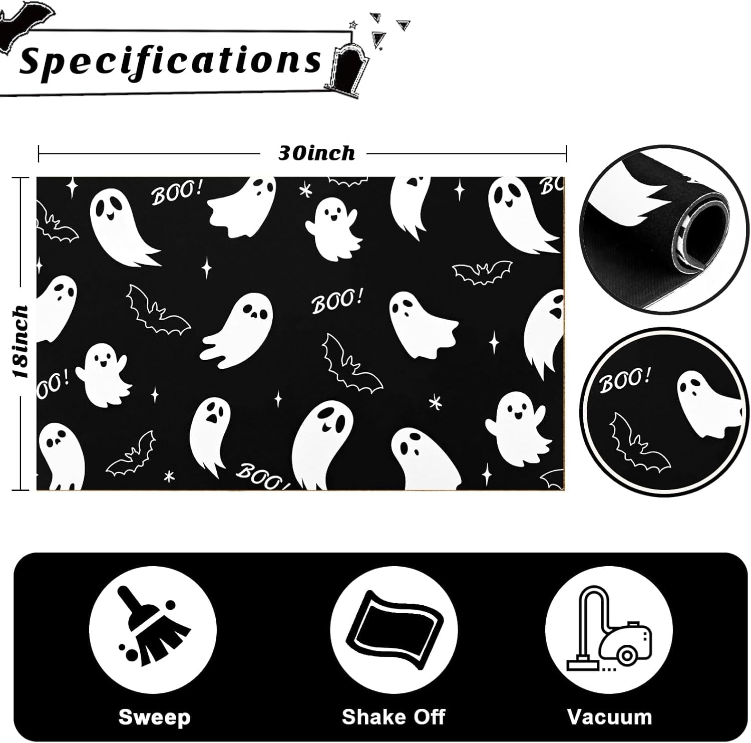 BLEUM CADE Halloween doormat is made of felt rubber, which can effectively prevent slipping and remove dust from the soles of shoes, and 5 mm thick rubber, which is very strong and durable. The size of 18 X 30 inches can be adapted to most scenarios, this Halloween welcome mat for outdoor can be placed near your front entrance, garden, backyard, or patio; use it as a welcome doormat for your small business or office building entrance. This entryway rug indoor has a Ghosts and Bats pattern to add a festive touch to your home. This Halloween Outdoor Door Mats is specially prepared for the advent of Halloween!