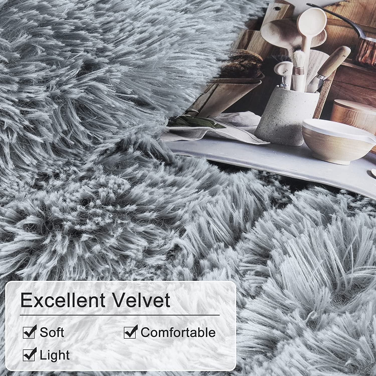 BLEUM CADE Luxury Fluffy Fuzzy Queen Bedding Comforter Set?4 Pieces Shaggy Duvet Cover Set?Furry Plush Velvet Comforter Cover with Zip Closure?Queen?Light Grey